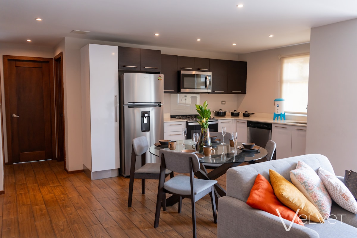 Opplev komforten ved å bo i en moderne, lys leilighet full av gjennomtenkte detaljer, med en strategisk beliggenhet i Guatemala City. Dette koselige stedet kombinerer funksjonelt design, komfort og unike fasiliteter for å gjøre oppholdet ditt perfekt, enten det er for jobb, turisme eller et lengre besøk. Herfra har du utmerkede forbindelser til sone 5, 15 og 16, og du er i nærheten av Ciudad Cayalá, den amerikanske ambassaden. UU., C.C. Portales og Metronorte.