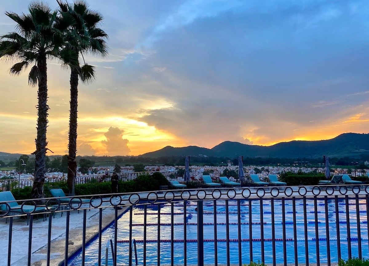 Slapp av på dette rolige og stilige stedet. Du er innenfor gangavstand fra Punto Sur og Lifestyle Center: filmer, kasinoer, restauranter, barer, klesbutikker og mer. Vi har kontrollert tilgang for din sikkerhet, privat overdekket parkering og gjesteparkering. To soverom, to komplette bad, stue, spisestue, vaskerom, balkong og klimaanlegg med utrolig utsikt over solnedgangen og utsikt over våren i skogen. Komplekset har basseng, terrasse, lekeplass med mer.