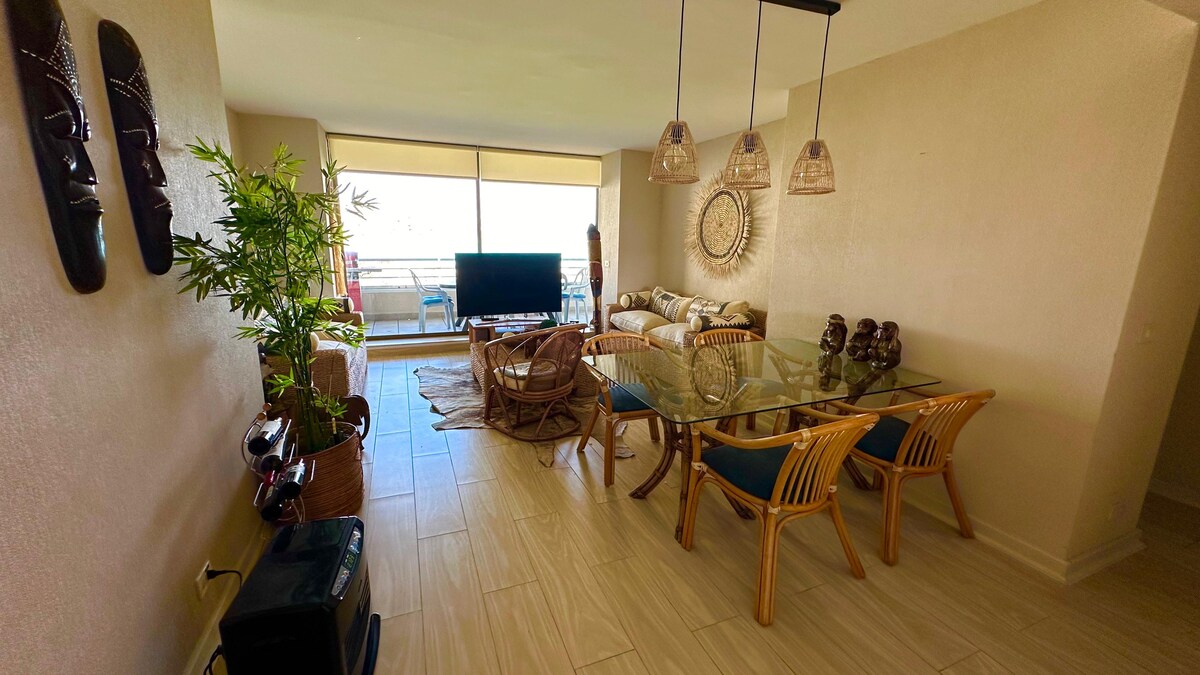 Attraktiv leilighet som ligger i det eksklusive leilighetskomplekset Bahía de Rosas. Europeisk arkitektur, store fellesområder og sikkerhet med tilgang til stranden Mirasol, Algarrobo. Leiligheten har tre store bassenger og et temperert basseng, grillplass, sandbane, tennisbane og vakre hager. Unn deg komfort, ro og kom og del dette vakre paradiset med familien, omgitt av natur og veldig godt vedlikeholdt. Det har også sikkerhet og butlere.
