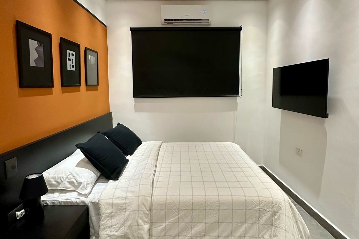 Monoambiente, ensuite con baño privado, jabón, toallas, ropa de cama, mesa de escritorio/comedor, cocinita, ollas, microondas, smart TV, A/C split, ventilador, frigobar, café y cafetera, cubiertos para 2, vasos, copa de vino, abridor de vino, secador de pelo, enchufes p laptop y USB. A 2 cuadras de Avda Brasilia, 4 de Avda España (transporte público), 5 de Avda Venezuela. En el corazón de Asunción a 20mts de una plaza. En zona de Restaurantes, Farmacias, Supermercados. 50mts de Supermercado