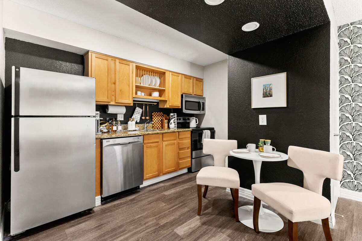 Bo i hjertet av San Antonio i denne stilige studioleiligheten i dette komfortable nabolaget! Enten du er her for å jobbe, ha det gøy eller litt av begge deler, kommer du til å elske det rene, moderne designet og de gjennomtenkte fasilitetene som får dette stedet til å føles som hjemme. Dette kommer du til å elske: Basseng, treningsrom og terrasse for avslapning. Lys, åpen planløsning med en komfortabel kingsize-seng og koselig stue. Fullt utstyrt kjøkken – perfekt for hjemmelagde måltider. Raskt trådløst nettverk og en smart-TV for arbeid og underholdning.
