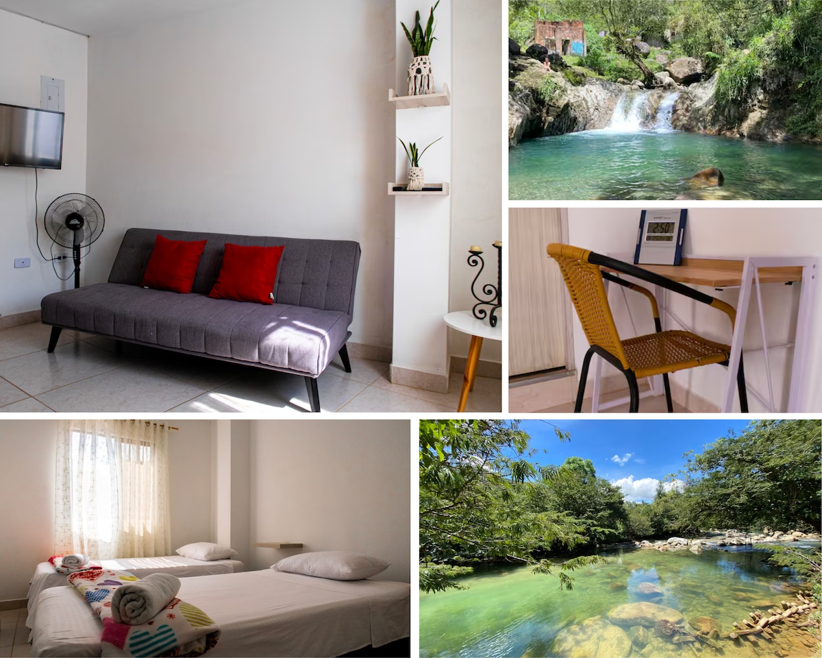 Romslig og moderne loft, den har alle nødvendige redskaper for oppholdet ditt, for eksempel: TV-stue, kjøkken, vaskemaskin og tørketrommel, dobbeltseng, romslig bad og klimaanlegg. Det ligger i en utmerket sektor, rett foran kulturhuset og ett kvartal fra hovedparken San Carlos. Noen meter unna kan du besøke de viktigste turiststedene som: - flere naturlige fossefall. - Stone of the tabor - naturstier - fotturer og mange flere!