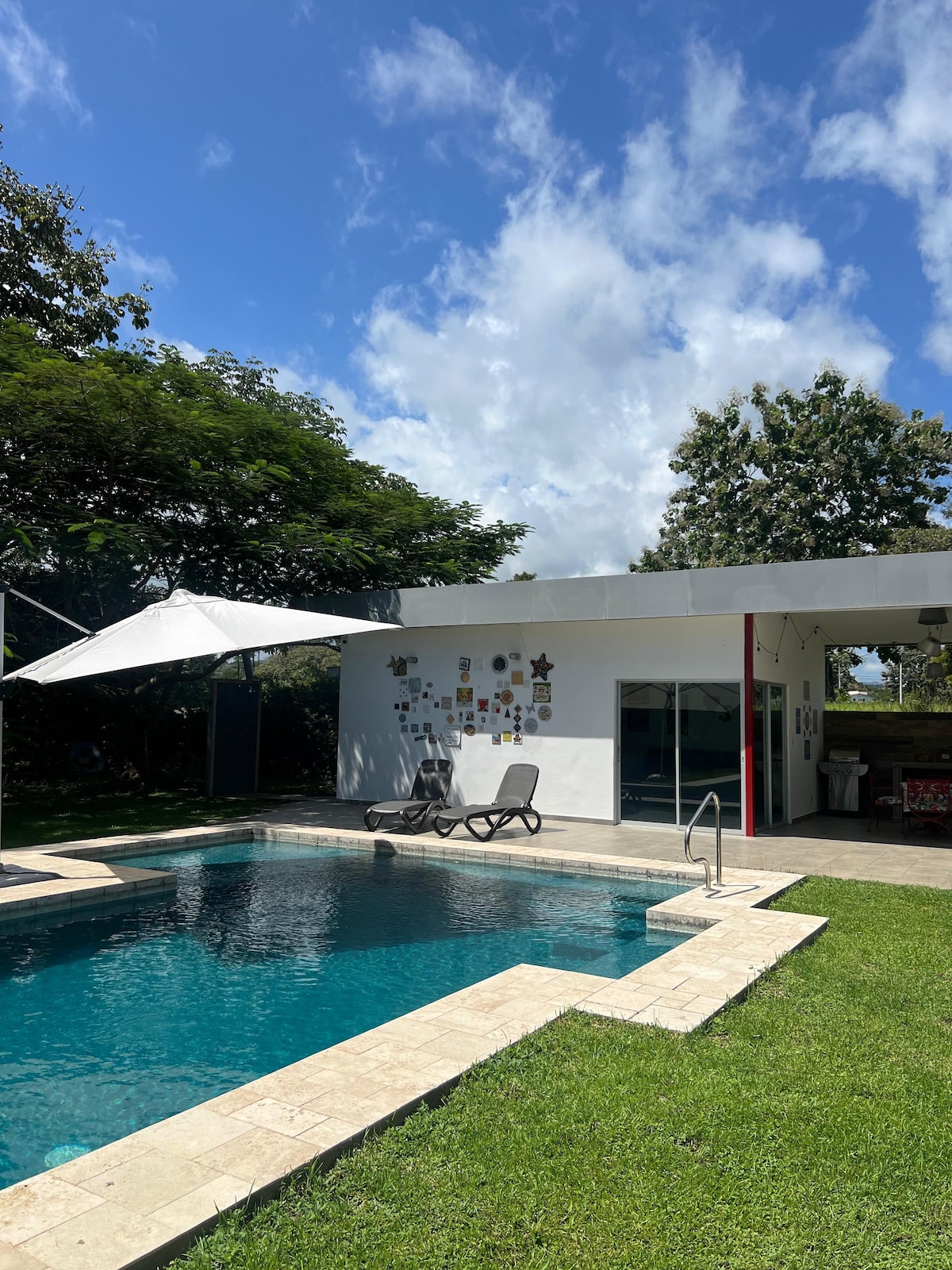 Hele huset i en kystby i Stillehavet. Huset har tre rom med aircondition og vifter, tre bad, et fungerende kjøkken med alt du trenger, en stue, terrasser og en vakker hage med basseng. Det er innenfor ca. 15 minutters gange til stranden eller 10 minutter med bil. Playa la Hermita er en av de beste strendene i området.