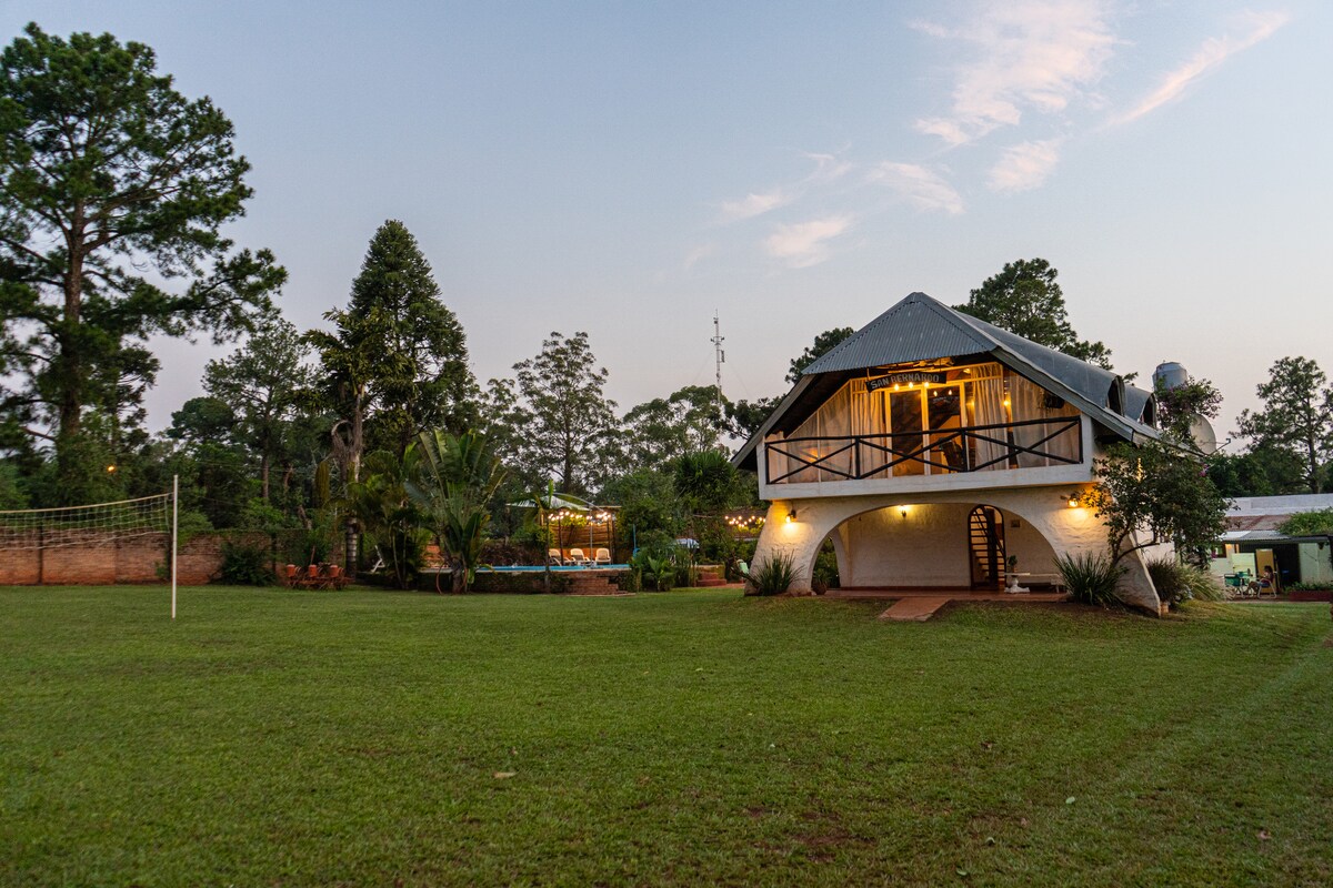 Et unikt reisemål for naturelskere, 50 meter ned til elven, ideelt for kystfiske, rolig område, bare minutter fra de vakre strendene og Yacyretá vannkraftverk. Utenfor kan du nyte en stor, skogkledd og fullt inngjerdet park, ideell for å hvile, dele tid med familien og med total ro hvis du kommer med kjæledyr. Du har parkering inne på eiendommen, en grill og en grill for måltider og utendørs sammenkomster.