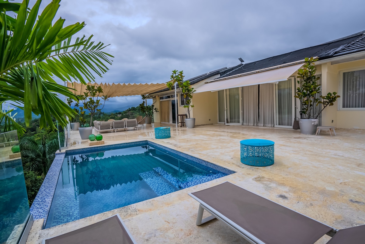 Helt nytt stort og romslig hjem i inngjerdet eiendom med luksuriøse bassengdetaljer og fasiliteter. Fire soverom med 3,5 bad, inkludert boblebad. Fullt og moderne kjøkken med gasskomfyr, stekeovn og stort kjøleskap. Trådløst nettverk og kabel-TV med fasttelefon. Uteområdet inkluderer en stor bakgård og hage med uteplass og privat garasje for to biler. Tre balkonger med utsikt mot fjellene og bassenget. Mye skapplass. Hele eiendommen er inngjerdet og trygg for barn og kjæledyr.