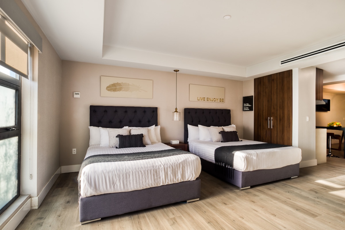 Denne stilige leiligheten ligger rett ved Avenida Revolución, byens mest ikoniske gate, omgitt av de beste restaurantene, kafeene, barene og det pulserende nattelivet. Inne finner du moderne innredning, førsteklasses fasiliteter og ultrakomfortable møbler, perfekte for å slappe av etter en dag med utforskning. Men det virkelige høydepunktet? De utrolige fellesområdene! Et fullt utstyrt treningssenter for å opprettholde rutinen din. Et innendørsbasseng for en forfriskende dukkert. En elegant forretningslounge for arbeid eller møter.