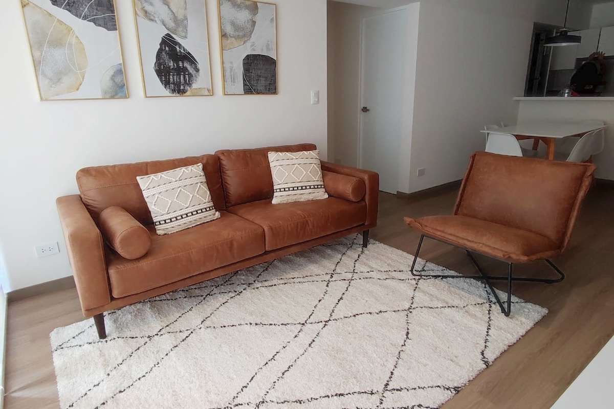 Moderne og koselig, fullt møblert leilighet i hjertet av Miraflores (Av. José Pardo), noen skritt fra Kennedy Park, Malecón og Larcomar. Ideelt for turisme eller arbeid. Den har to soverom: hovedsoverom med queensize-seng og sekundær seng med en toseters sovesofa pluss en ekstra 1,5-seters. En stue med en sovesofa i queen-størrelse og en balkong med utsikt. Trådløst nettverk med høy hastighet, utstyrt kjøkken, smart-TV, basseng, treningsstudio og overvåking døgnet rundt.