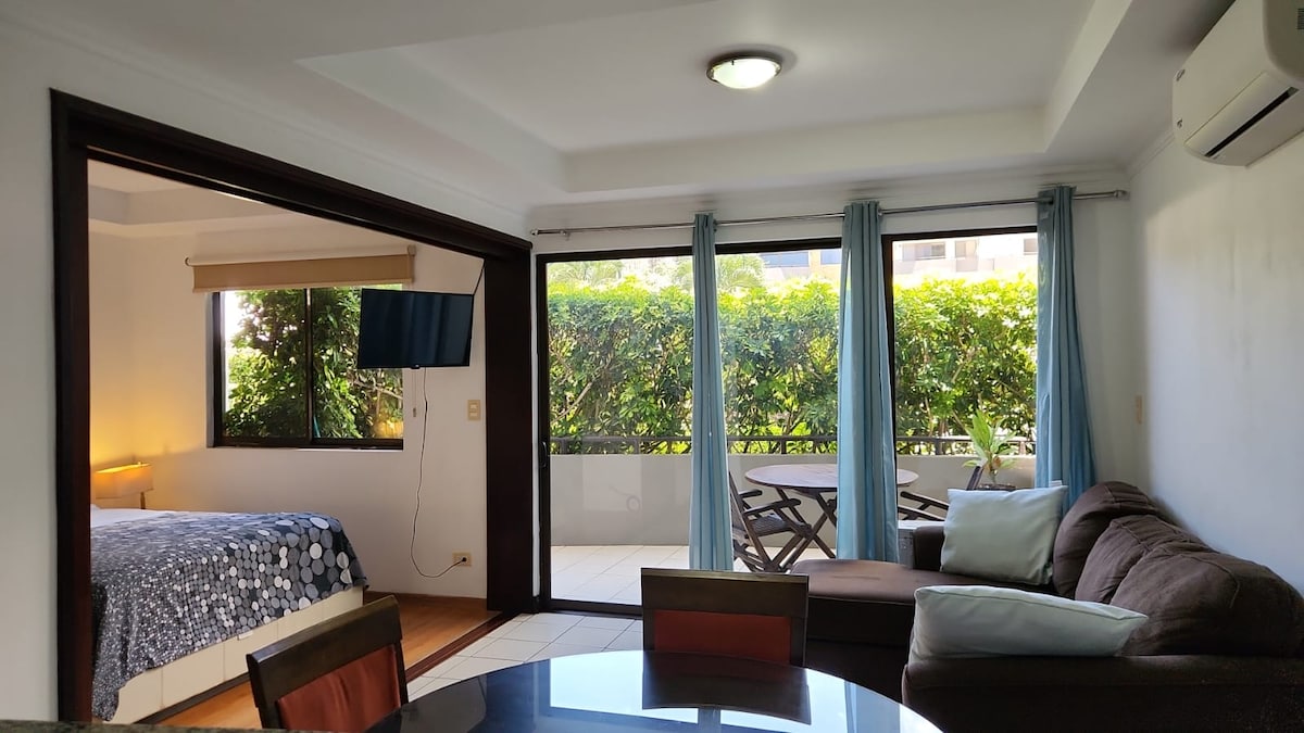 Velkommen til vårt fantastiske feriested i Sabana, hjertet av San José! Nyt en fantastisk NATURUTSIKT fra den koselige leiligheten vår, bare 20 minutter fra flyplassen. Det er åtte internasjonale RESTAURANTER I BYGNINGEN, inkludert en kaffebar! Dette rolige fristedet tilbyr bekvemmelighet og ro. Slapp av på balkongen, ta en forfriskende dukkert i BASSENGET, hold deg aktiv på TRENINGSSENTERET, jobb i det dedikerte rommet eller spasér gjennom de vakre HAGENE. Nyt San Josés underverker. Bestill nå!