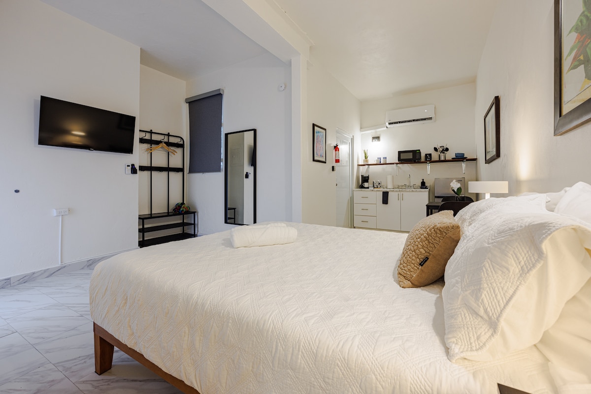 Opplev gamlebyen i San Juan fra denne vakkert restaurerte bygningen i kolonistil. Vår koselige to-roms leilighet tilbyr sjarm, komfort og en uslåelig beliggenhet – perfekt for ferie, en romantisk ferie, en jobbreise eller en rask flukt. Nyt en romslig stue, et fullt utstyrt kjøkken, et komfortabelt bad og en rolig innvendig terrasse hvor du kan slappe av og koble av. Bestill oppholdet ditt i dag og gjør besøket ditt uforglemmelig!
