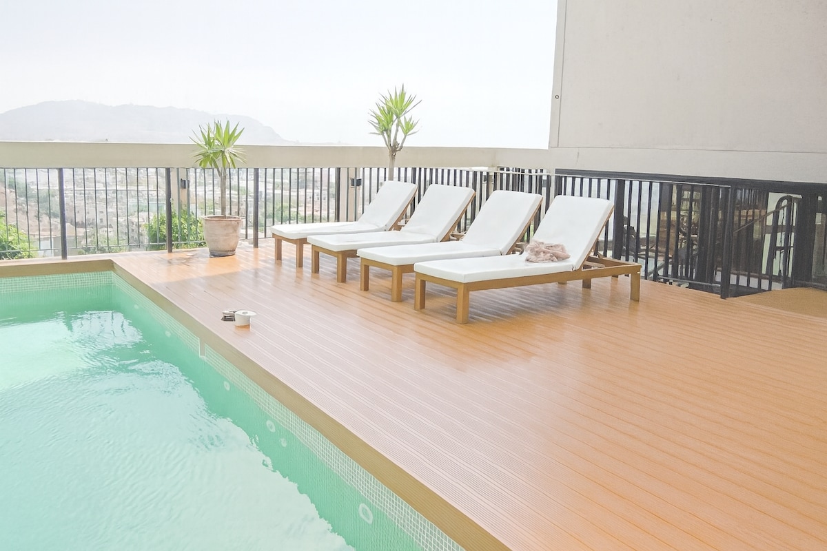 Stilig leilighet med utsikt og basseng med skyline, San Isidro.