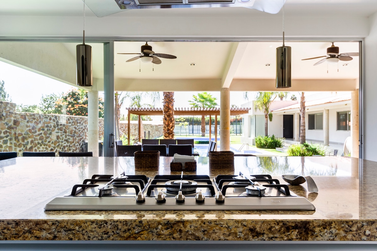 Slapp av, pust inn ro i et familiemiljø. PRIVAT BASSENG 🏊♂️ (kun for husgjester) med SOLCELLER, GRILL med tak☀️, hager, TV (3)med kabel på rommet og på rommene, TRÅDLØST NETTVERK, utstyrt kjøkken. PERIQUERA STOL FOR NIÑO * PETFRIENDLY 🐕 * GRATIS VIN (hvis du bestiller etter tre netter ) *Kun️ én hundepike eller medium (opptil 40 cm høy) er tillatt. * 10 minutter fra Tequisquiapan sentrum, i privat fraksjonering, i nærheten av flere vingårder.