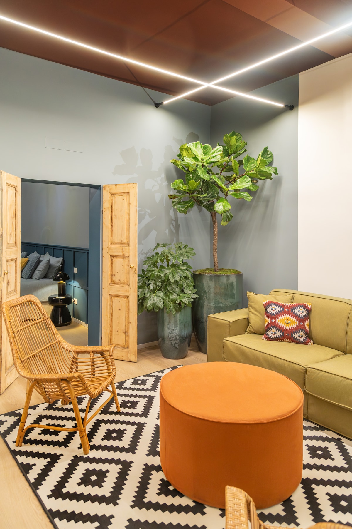 Elegant, totalrenovert leilighet over de berømte porticoene i Bologna, nylig utnevnt til verdensarv av UNESCO. Stedet inkluderer et stort bad og et åpent område med et fullt utstyrt kjøkken og en stue med en komfortabel seng for to personer. Under restaureringen ble freskomalerier fra 1800-tallet oppdaget og er nå forbedret av et sofistikert belysningssystem. Den raffinerte innredningen minner om Rococo-overflod og avantgarde på 1970-tallet.