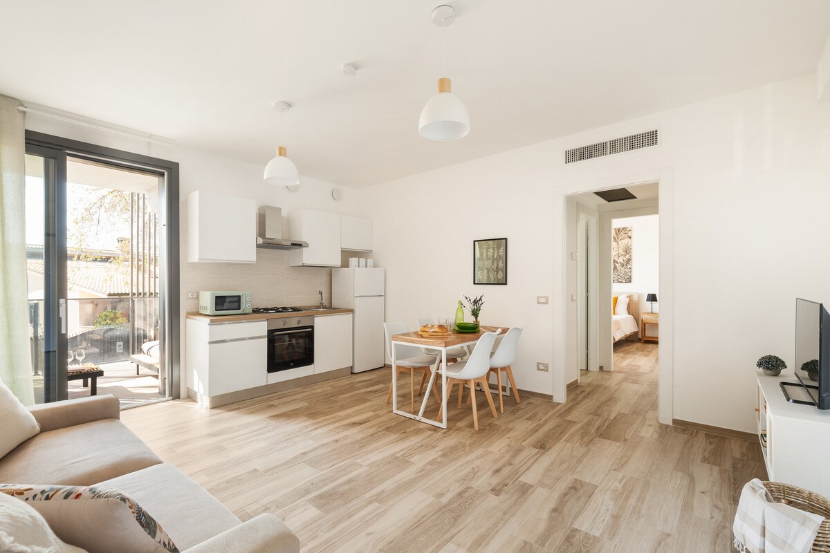 Elegant leilighet i en nybygd grønn bygning,innredet på en funksjonell måte for å ønske reisende fra hele verden velkommen. Beliggende i en strategisk posisjon bare seks minutter fra Fiumicino lufthavn,i et rolig område, bare noen få minutters gange fra de viktigste tjenestene: supermarked, bar, apotek og bussholdeplass til flyplassen. Perfekt for å nyte et komfortabelt og avslappende opphold! BESTILL NÅ og dra nytte av kampanjene for lengre opphold!!!