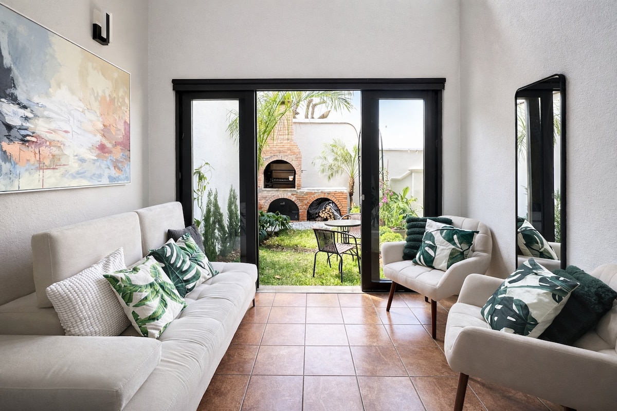 Våkn opp til en fantastisk utsikt over vulkanen og nyt morgenkaffen på en privat takterrasse i dette romslige hjemmet med fire soverom, som ligger bare noen minutter fra sentrum av Antigua. Boligen vår er perfekt for familier, venner og bryllupsgrupper, og den kombinerer Antiguas sjarme med moderne komfort, trygghet og plass til å virkelig slappe av. Stedet ligger i et fredelig, inngjerdet område med sikkerhetstjeneste døgnet rundt, så du kan nyte roen om natten, samtidig som du er bare en kort kjøretur unna Antiguas restauranter, kaféer, ruiner og livlige kultur.
