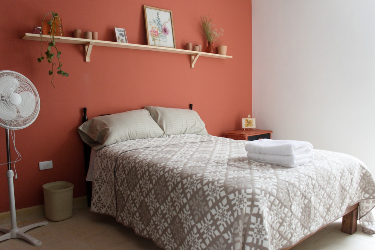 Nyt en stilig opplevelse på dette sentralt beliggende overnattingsstedet, bare åtte minutters gange fra den berømte San Marcos National Fair og sentrum av Aguascalientes. Du vil ha et vakkert, uavhengig rom med Disney og Max, inngjerdet garasje som er ideell for små eller mellomstore biler (sjekk dimensjoner hvis du trenger mer informasjon) og elektrisk port for enkelhets skyld, i tillegg til å kunne nyte naturen og et rolig sted på terrassen.