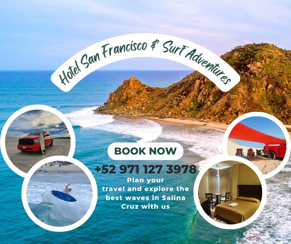 Dette stedet er et ideelt overnattingssted for reisende som leter etter hvile, inspirasjon til aktiviteter som surfing, fiske, volleyball, sandboarding blant andre. Leiligheten har flere tjenester for et hyggelig opphold, og den har vakre utsikter både dag og natt. Det er mange surfesteder og severdigheter i Isthmus i Tehuantepec Oaxaca, hvor du lærer om kulturen i regionen.