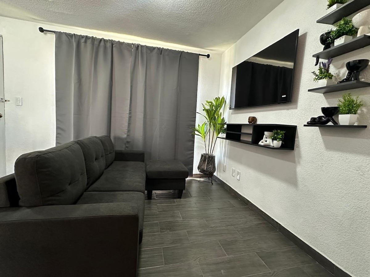 Moderne, helt uavhengig leilighet, som ligger bare syv minutter fra Toluca internasjonale lufthavn og i nærheten av industriområdet. Perfekt for reisende, hvile eller jobbopphold. Den har to soverom med dobbeltsenger og skap, et komplett bad, en stue med TV, et perfekt arbeidsrom, en spisestue og et fullt utstyrt kjøkken med kjøleskap, mikrobølgeovn, blender og kaffetrakter. Garasje for ett kjøretøy. Alt er klart til å få deg til å føle deg som hjemme!