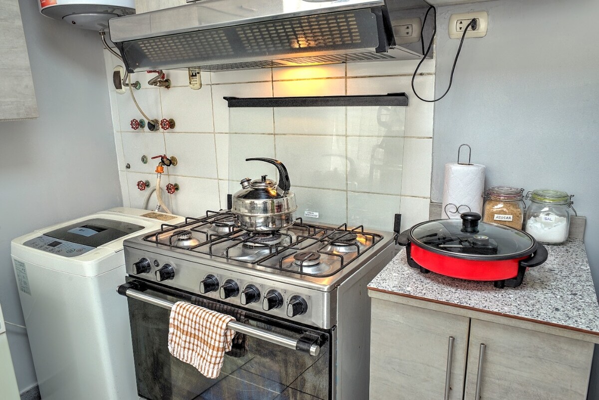 Slapp av som et par, nyt som en familie eller med venner, i denne overnattingen hvor roen kan pustes. Omgitt av parker, med veldig god naturlig belysning. Sikre flyreisene dine i denne komplette leiligheten som gjør at du alltid kommer i tide, som ligger bare 15 minutter fra flyplassen. Hovedbad med badekar, varmt vann, 60-tommers TV med Claro TV i stuen. Parkeringsplassen har en maksimal kapasitet på opptil én Kia Sportage SUV. Fjernkontrollen har en verdi på 80 dollar (ta vare på den).