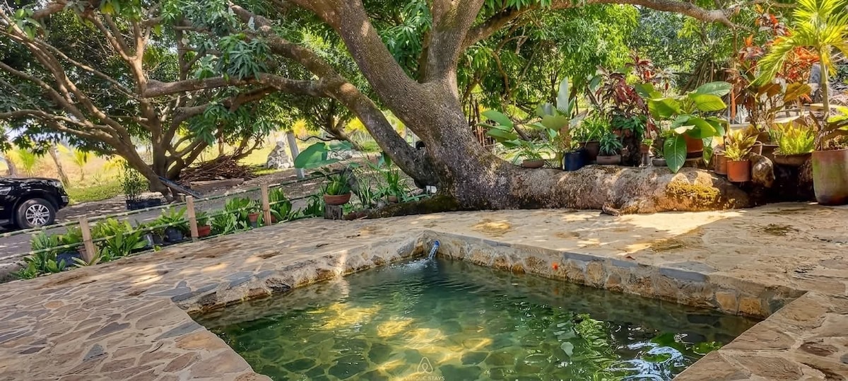 Flykt fra byen og slapp av i Balai Taltalons gjestefløy, en del av vårt fredelige naturferiested omgitt av ulike trær, planter og grøntområder, perfekt for familier eller små grupper. Våkn opp til frisk luft og lyden av fuglene. Ta en dukkert i familiebassenget, lag mat sammen i det åpne kjøkkenet, eller bare nyt skyggen fra mangotrærne, furutrærne og de blomstrende hagene våre. Dette er det perfekte stedet å roe ned, finne tilbake til naturen og lade opp sjelen.