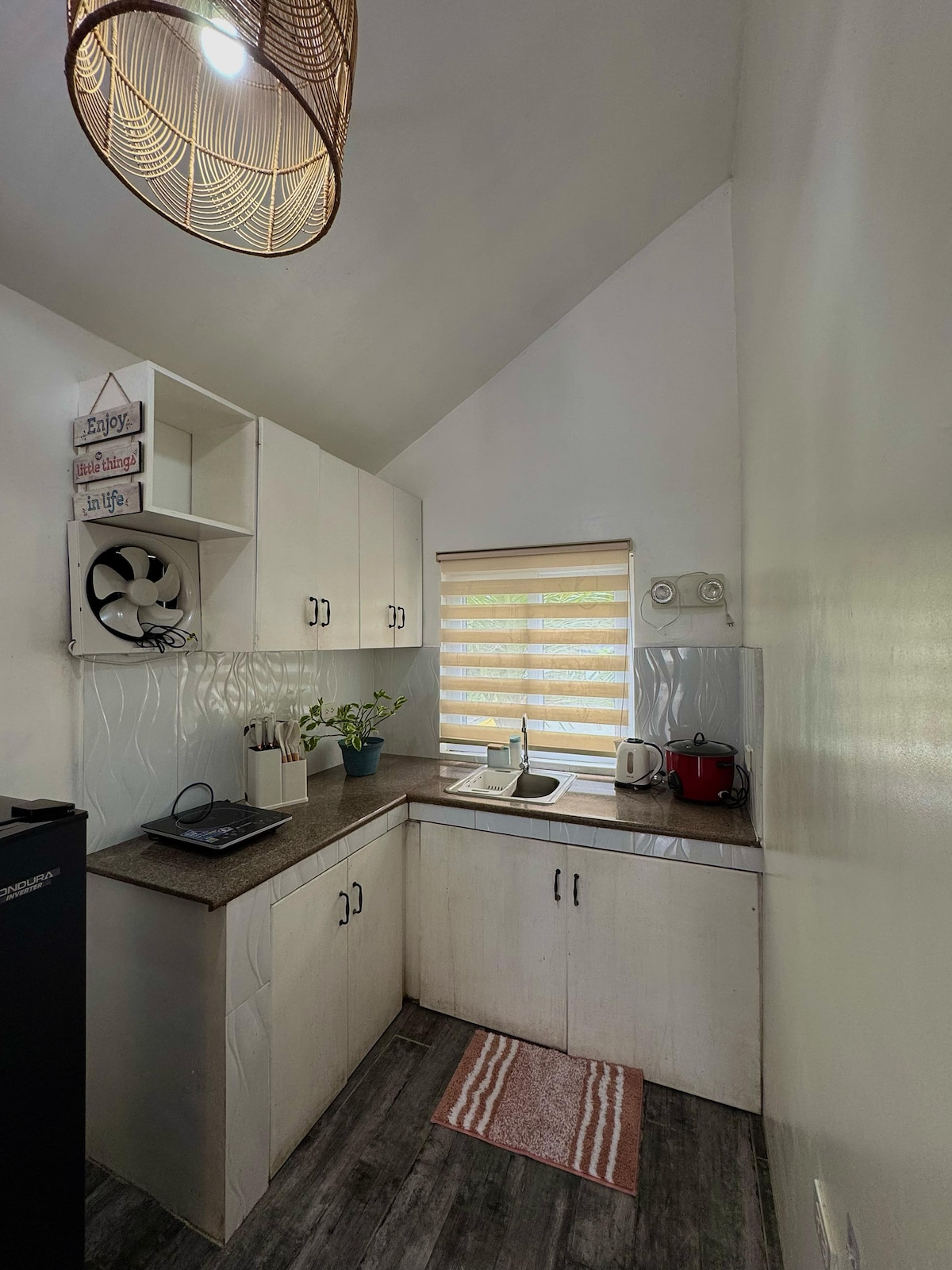 Plass til 1-6 personer. Soverom av loftstype, én dobbeltseng, én enkeltseng, to sovematter. Ingen tilleggsgebyrer eller rengjøringsgebyr. Budsjettvennlige hjemmets bekvemmeligheter med moderne fasiliteter. Enkel innsjekkingsprosess uten vert. Rengjør sengetøy, putevar, mini-håndklær og tepper. - fullt airconditionert område. To ekstra vifter er tilgjengelig. - TV med Netflix- og Amazon Prime-videoer - raskt trådløst nettverk