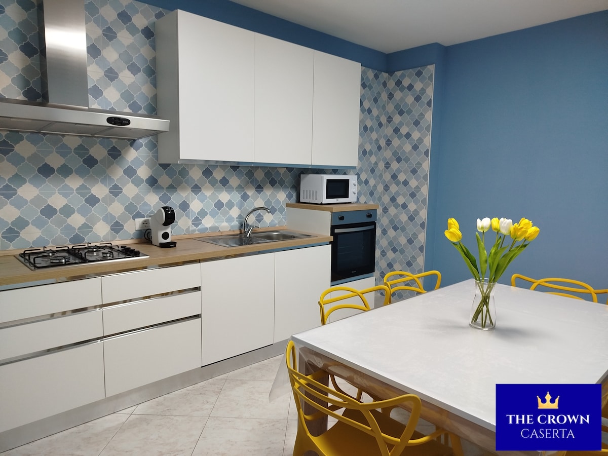 Noen få minutter fra Caserta, med den fantastiske Reggia, kan du bo i en komfortabel leilighet som ligger i mesaninen, med gratis intern parkering og i en utmerket posisjon for å komme seg rundt med offentlig transport eller med egen bil. Utstyrt med trådløst nettverk, TV og aircondition. Det ligger i et rolig område mindre enn 50 m fra stasjonen, med mulighet til å nå Reggia på fem minutter og Napoli på 40 minutter med tog.