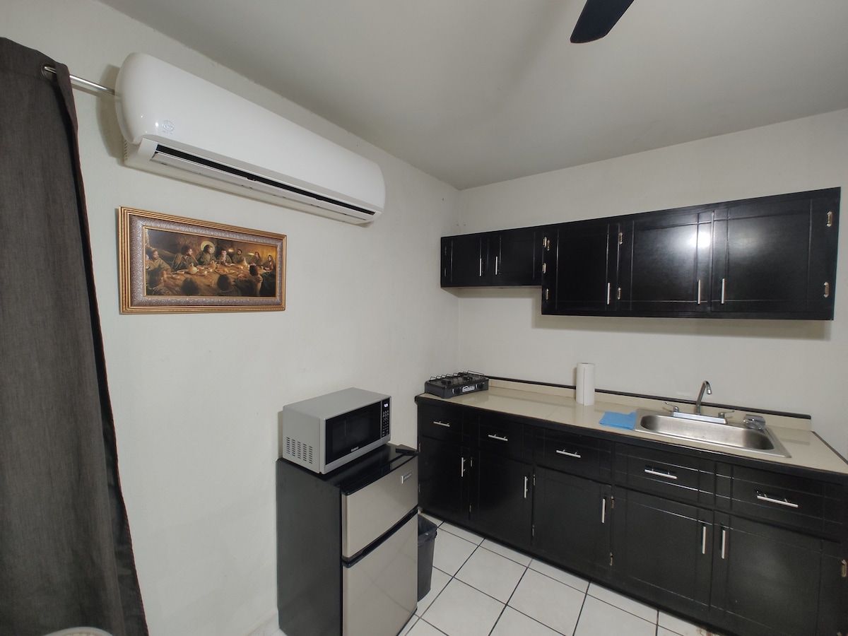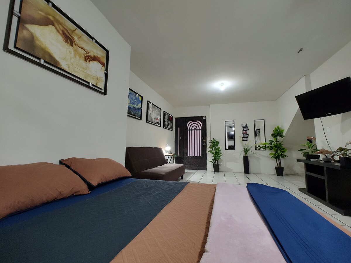 Fullt utstyrt og eksklusivt rom for gjestene. VI HAR FAKTURERING Omgitt av kinoer, restauranter, kaféer, supermarkeder Utstyrt kjøkken, klimaanlegg, komplett bad, kabel-TV, Internett, Smart-TV A - 10 minutter fra Tigres idrettssenter 15 minutter fra Rectoria UANL, Tigres stadion og Mobil Super stadion 20 minutter fra Norte flyplass og 35 minutter fra MTY internasjonale flyplass
