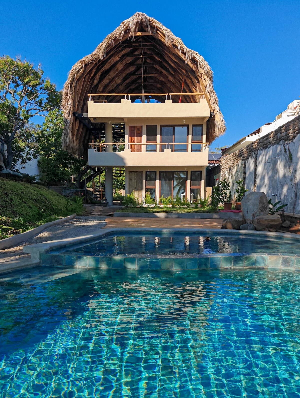 På utkikk etter en spektakulær og avslappende strandferie? Slapp av på Casa Azul, en romslig ferieoase med utsikt over havet og solnedgangen. Casa Azul er utstyrt med alt du trenger, og den er perfekt for familie, gjenforeninger, hjemmekontor, strandmoro og yoga-/surferferier. Dette fantastiske strandhuset ligger i et rolig, inngjerdet område, tre minutter med bil fra El Tunco. Dette er stedet ditt for å slappe av, lade opp og nyte den utrolige utsikten.