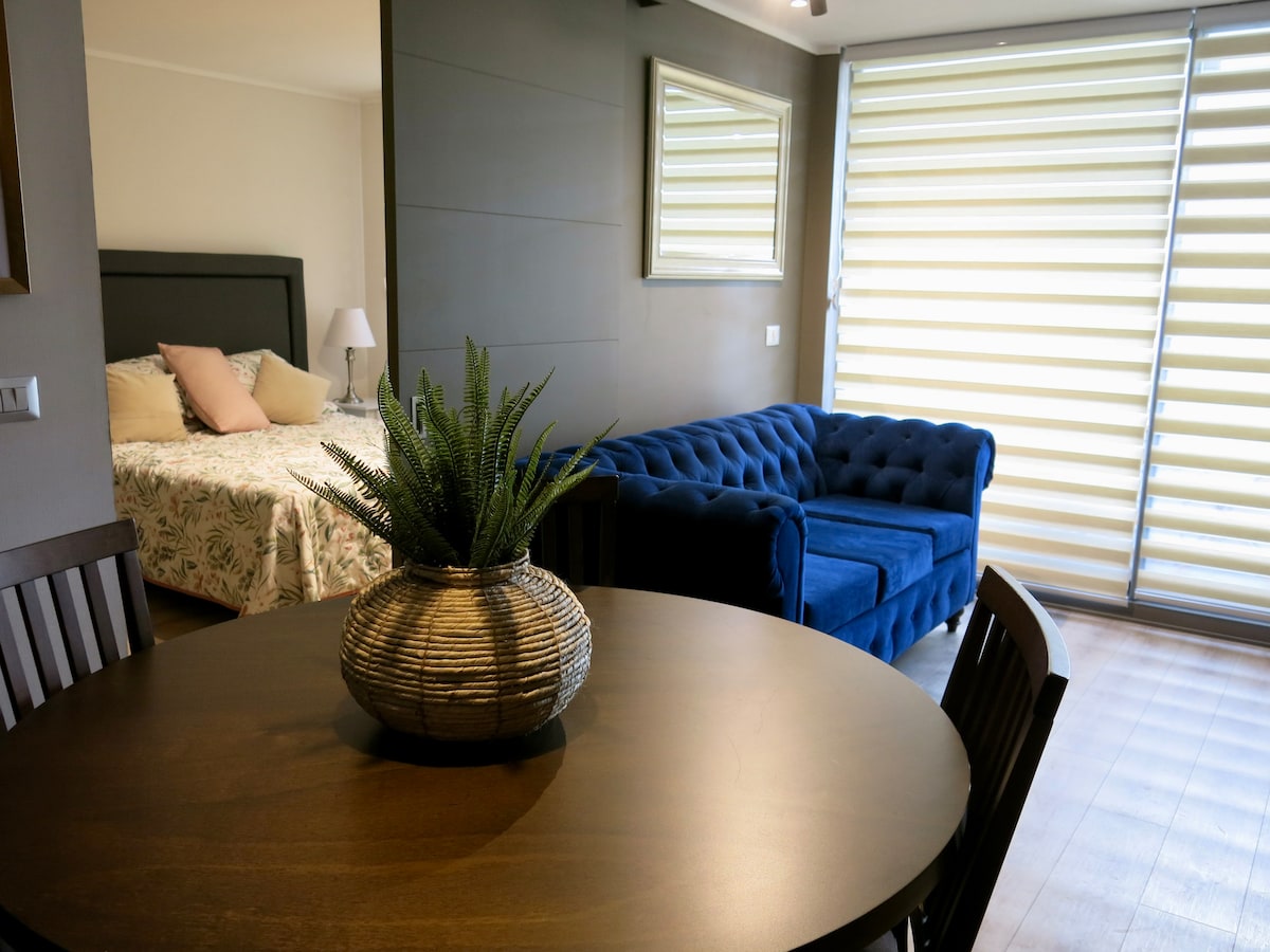 Kos deg i denne moderne og koselige leiligheten. Med balkong, perfekt for å hvile eller jobbe komfortabelt, med fullt utstyrt kjøkken, trådløst nettverk og et elegant design som kombinerer varme og stil. Beliggende fire minutter fra Metro lo Ovalle med rask tilgang til motorveier, kaféer, supermarkeder og sykehus. Ideelt for par, forretningsreisende eller korte opphold i Santiago. 🛋️ Stue med en komfortabel sofa 🍳 Kjøkkenet er utstyrt med stekeovn, mikrobølgeovn og kjele. 🌞 Balkong med naturlig lys 💻 Høyhastighets trådløst nettverk