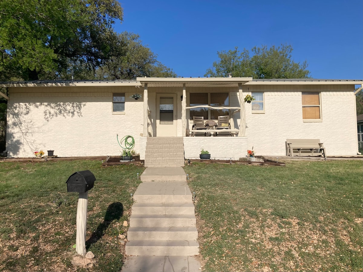 Nyt vårt vakre hjem i hjertet av Lampasas, gangavstand til sentrum OG Badger Stadium! Nyt en kopp kaffe på verandaen, eller gå til den lokale iskrembutikken eller de mange restaurantene og butikkene i sentrum. Dette 1700 kvm store hjemmet har tre store soverom og to fullt utstyrte bad. Det har tregulv og høyt tak overalt. Parkering under tak på baksiden. Flott for en jentehelg, en jobbreise eller en romantisk ferie for å besøke de lokale vingårdene. Vi vet at du kommer til å elske dette hjemmet!