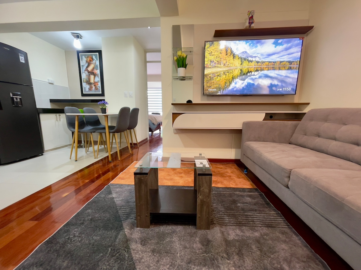 Velkommen til Cusco, hovedstaden i det store Inka-imperiet. Vår fremste leilighet er designet med tanke på deg for å gi deg den beste komforten, slik at du kan tilbringe de beste dagene dine hjemme, og for å la deg nyte vår andinske, virreynal og moderne kunst. Denne nye leiligheten📍 ligger mindre enn ti minutter fra det historiske sentrum i Cusco og to kvartaler fra kjøpesenteret Real Plaza, og gir deg enkel tilgang til det beste byen har å by på.