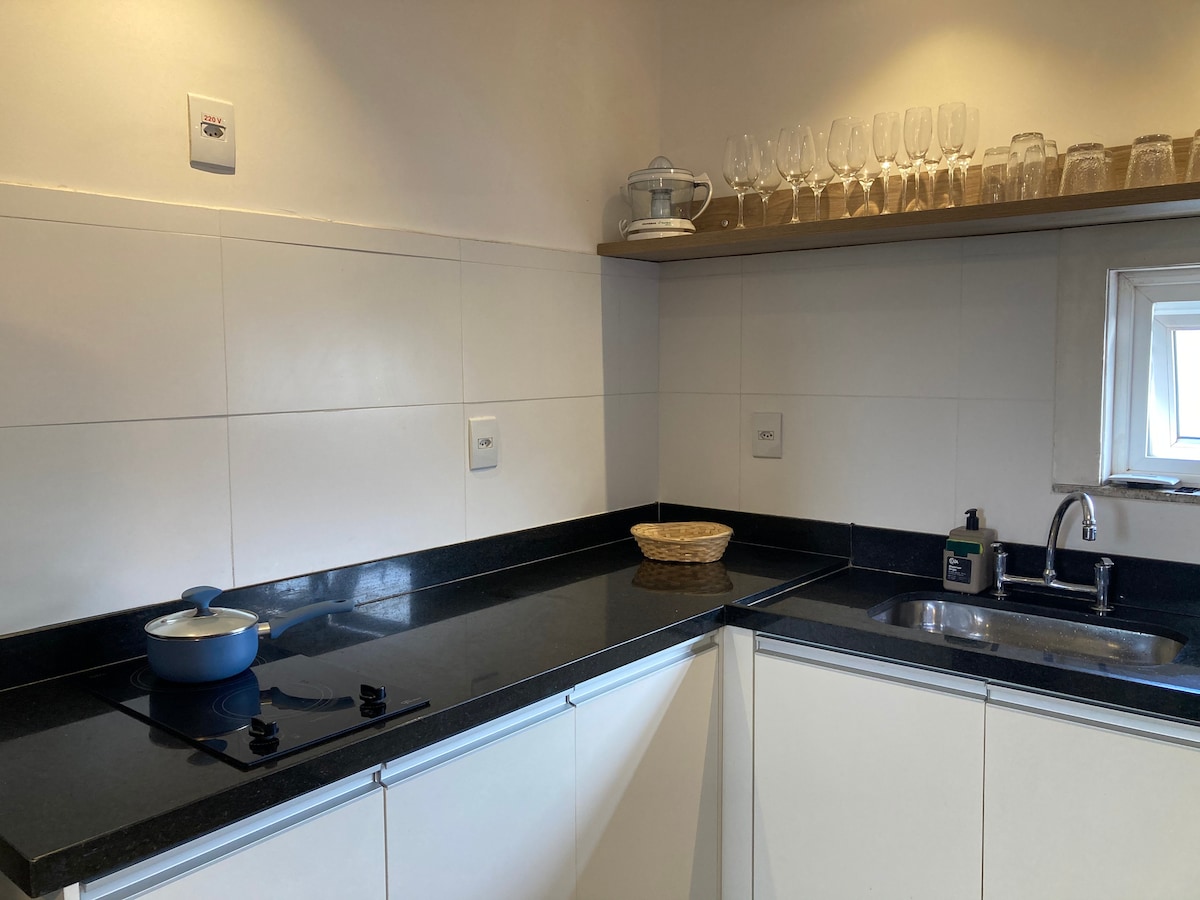 Hyggelig sted. Sammenhengende soverom og kjøkken, bad og balkong, helt privat. Utmerket beliggenhet i Palmeiras-området, med bil er det 5 minutter til sentrum, 8 minutter til Praia do Forte og 20 minutter til Búzios og Arraial do Cabo. Nabolag med egen infrastruktur, restauranter, butikker, markeder, shopping og strender. I nærheten av Rua Porto Alegre, en av de mest boheme gater i byen, med én km med barer og restauranter.