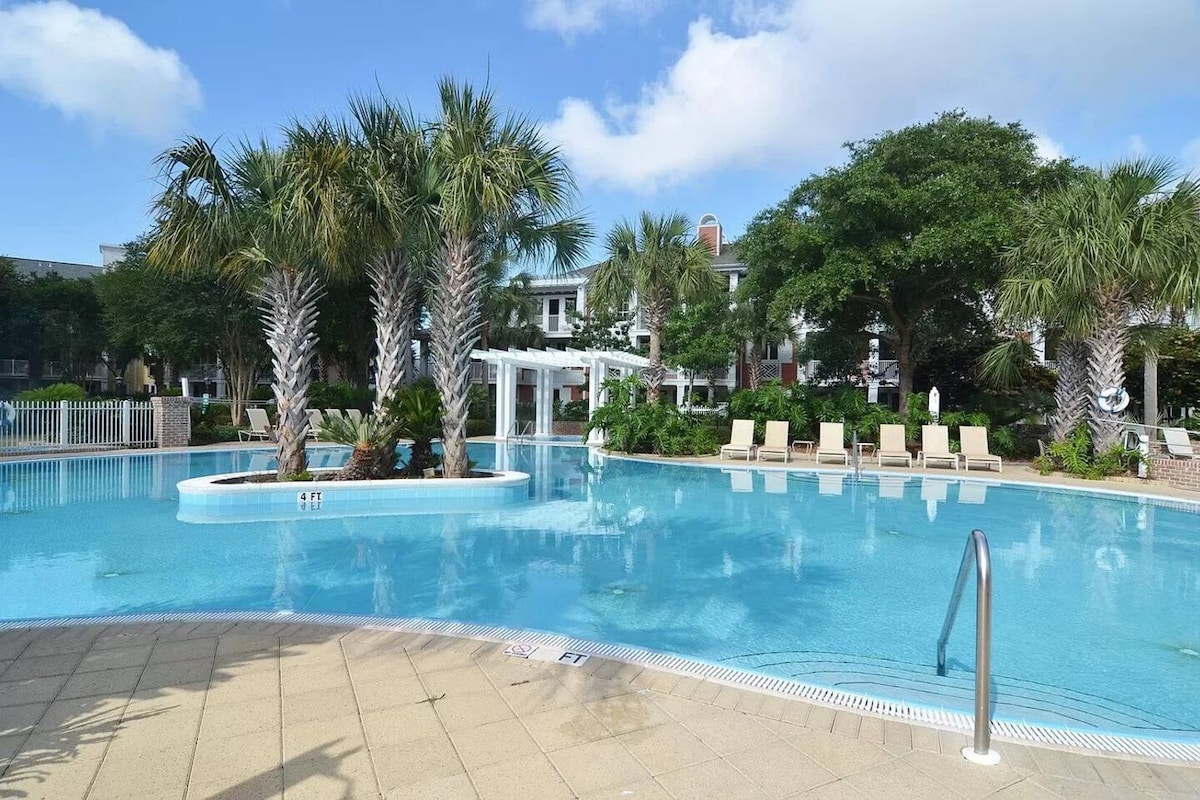 Spar penger med 10 % rabatt 🏖️ Med en levende innredning i moderne fargetoner er den komfortfokuserte leiligheten vår et must. Tilbring kvalitetstid sammen på terrassen, tilbered måltider på det fullt utstyrte kjøkkenet eller nyt fasiliteter som basseng, boblebad, treningssenter med mer! Denne leiligheten med ett soverom og ett bad ligger i hjertet av landsbyen Baytowne Wharf og tilbyr uendelige muligheter rett utenfor, inkludert butikker, spisesteder og utendørs underholdning med fyrverkeri. Bestill i dag!