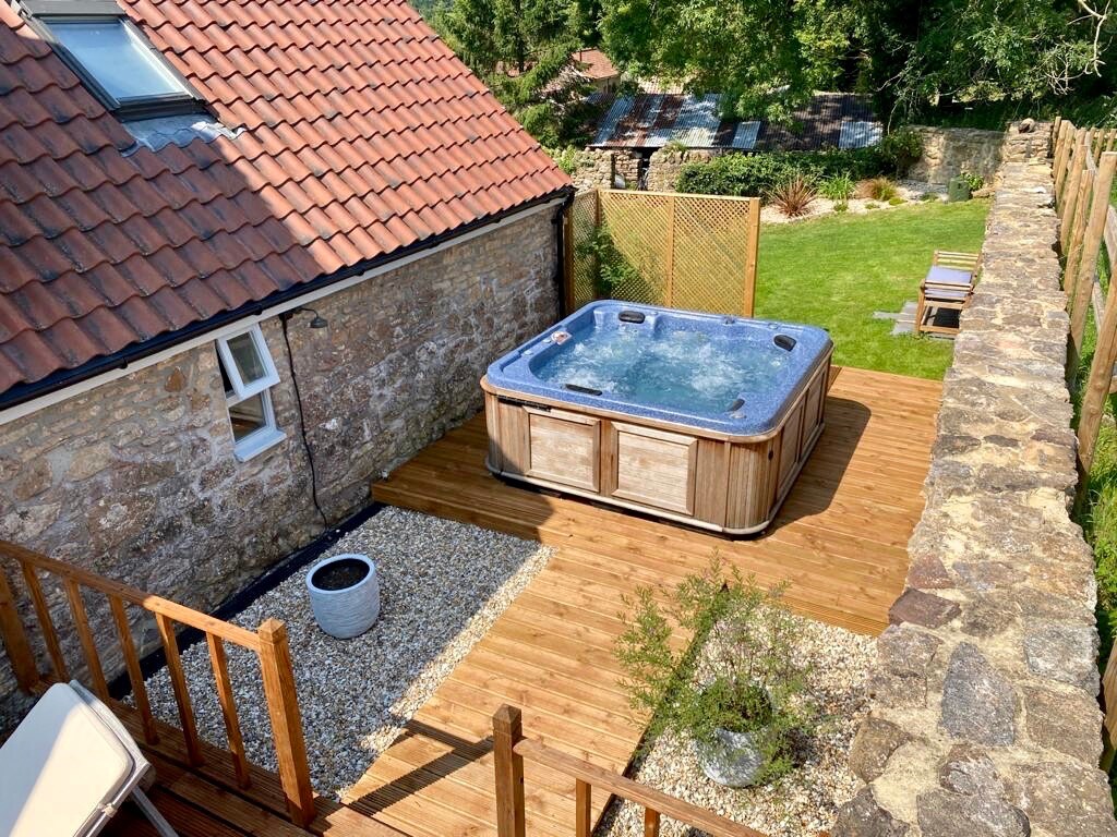 Søt, periodehytte i Mendip Hills. Nylig oppusset, den er ren, ryddig og stilig. Kom deg vekk fra alt i koselig sjarm. Lytt til bekken som renner forbi, eller slapp av i det splitter nye boblebadet med fullstendig privatliv. Du kan holde deg varm i myke kåper etterpå foran peisen. Nyt den fantastiske utsikten fra alle sider av hytta, med mulighet til å tenne vedovnen oppe for den ultimate avslapningen. Det er mange muligheter for turer på landet, noen med puber.