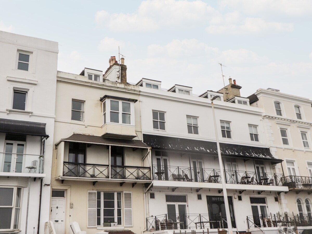 Hytte ved stranden, gå rett inn på Sandgate Beach. Albion Cottage er et rekkehus rett ved sjøkanten med flott utsikt over kanalen. Overnattingsstedet er over 3 etasjer med fire soverom i god størrelse. Det er tre bad - to med dusj og ett med badekar og dusj. Huset ligger i landsbyen Sandgate, som har et godt utvalg av puber, restauranter og nærbutikker. Det er parkering rett utenfor, gode bussforbindelser til både Hythe og Folkestone.