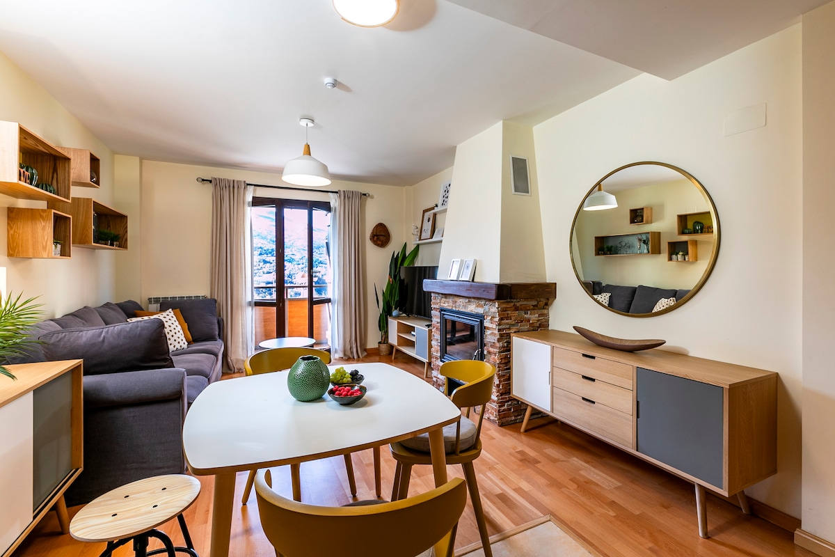 Koselig leilighet, fullt utstyrt for barnefamilier, med kjæledyr, par og vennegjenger som elsker ro, vakker fjellutsikt og den friske luften i Pyreneene. Vi ligger ti minutters kjøretur fra Panticosa og 20 minutter fra Formigal. Vi har et rom med dobbeltseng, et annet rom med køyeseng for tre personer, en stue som er forbundet med kjøkkenet og et bad. Hvis du ser etter et fint sted med en rustikk-modern design, er vi her!