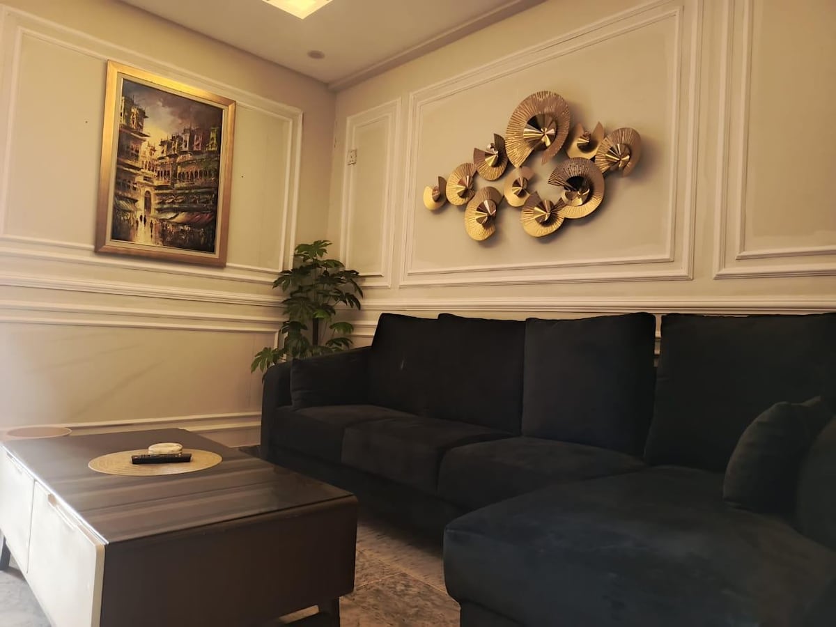 Moderne, luksuriøst og estetisk penthouseopphold i DHA Phase 2 Islamabad. Industrielt design med terrassehage, innsjekking uten vert, smart-TV med Netflix inkludert, raskt trådløst nettverk, fullt utstyrt kjøkken (komfyr, mikrobølgeovn, kjøleskap, vannkoker, kjøkkenutstyr og bestikk), fylt baderom og ekstra madrasser, privat takhage med sitteplass, fantastisk utsikt. Førsteklasses beliggenhet nær parker, kjøpesentre, restauranter, kaféer, bare to minutters kjøretur til Central Park, fem minutter til Giga Mall, tolv minutter til Bahria Town (alle faser) og én time fra flyplassen.