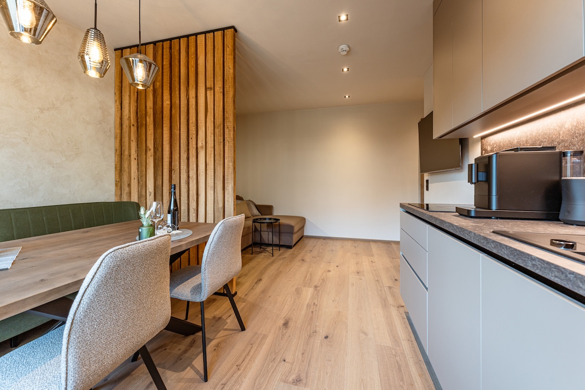 Luksuriøs alpint leilighet (78 m2) i Zell am See for fire personer. Ski inn/ski ut via den tilstøtende Ebenbergbahn-kabelvognen. Førsteklasses beliggenhet innenfor gangavstand til sentrum av Zell am See. Kjæledyr tillatt! To luksuriøse soverom, hvert med eget luksuriøst bad. Designerkjøkken med kjøkkenøy, MIELE-apparater, SAECO espresso, QUOOKER, elbillader. Bygget i 2024 og utstyrt med alle moderne bekvemmeligheter og vakre materialer. Du vil umiddelbart føle deg som hjemme her!