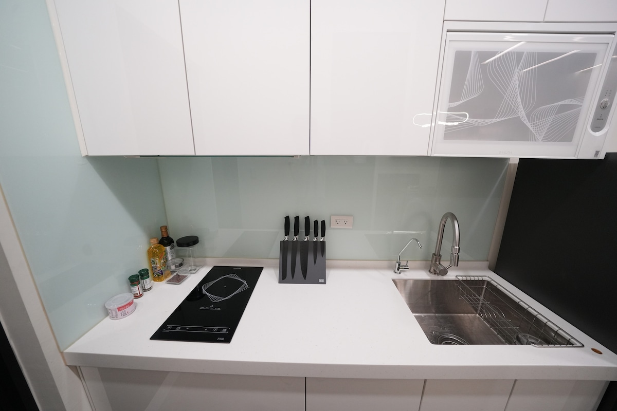 Hele hjemmet for kun én gruppe. Én person, ett teppe, en god natts søvn. To soverom, ett bad, balkong, klimaanlegg, smartlås, robotstøvsuger. Kjøleskap med ismaskin, RO-vann, Brita-dispenser, vaskemaskin/tørketrommel, bevegelsessensorlys. Ingen matlaging (kun mikrobølgeovn). 58-tommers smart-TV + Bose-lydplanke, Netflix/YouTube (konto kreves), trådløst nettverk med 300 Mbit/s. I nærheten av MRT og LRT, butikker, YouBike, døgnåpen butikk, parkering.
