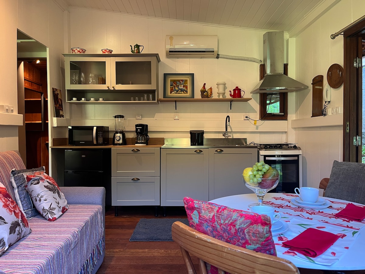 En rustikk hytte foran Conceição-lagunen, omgitt av innfødt skog, med en krystallvannstrøm for å bade, en oppvarmet jacuzzi med kildevann, hellig brann for å varme nettene og en utrolig hage for å sole seg eller meditere. Det er en alpehytte med god komfort og også privatliv. Ideelt for par som ønsker å feire kjærlighet, venner som ønsker å komme sammen og nyte naturen, familier som ønsker fred og ro, eller forfattere og kunstnere som leter etter inspirasjon.