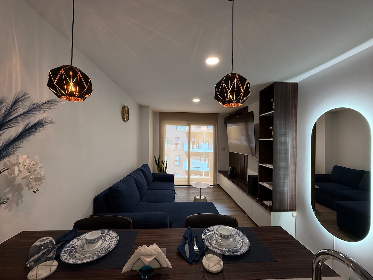 🏙️ Opplev Guatemala fra 23. etasje i en moderne leilighet med privat balkong og fantastisk utsikt over byen. Perfekt for par eller enslige reisende som ønsker stil og beliggenhet. 📍Beliggende i hjertet av sone 10, bare noen minutter fra flyplassen og noen skritt fra Oakland Mall, omgitt av restauranter og uteliv. 🛋️ Fullt utstyrt kjøkken, raskt trådløst nettverk, smart-TV. 🏢 Basseng, treningsstudio, møterom og sikkerhet døgnet rundt. 🛬 Ideelt for turisme eller jobbreiser.