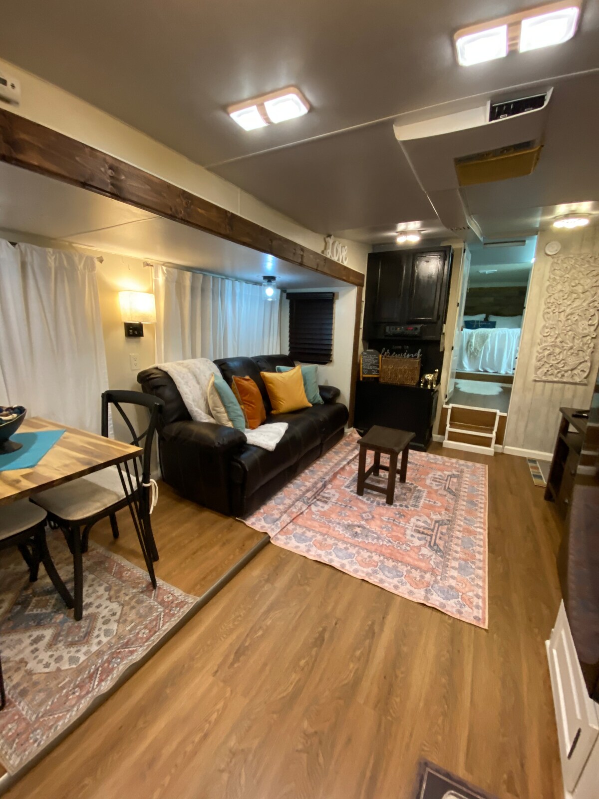 Det er en campingvogn med queensize-seng, kjøkken og bad . Toalett og dusj er i et separat privat område. Det er et sted som er perfekt egnet for hvile. Forvent å høre noen hunder bjeffe når de går ut en stund. De er innehunder og små, men ikke bli overrasket hvis du hører dem. Det er en ombygd eldre femtehjulsmodell, så ikke forvent at alt er nytt. Jeg er ikke ansvarlig for tapte gjenstander. Ingen kjæledyr. Hvis gjesten tar med kjæledyr, legges det til ytterligere 150 dollar.