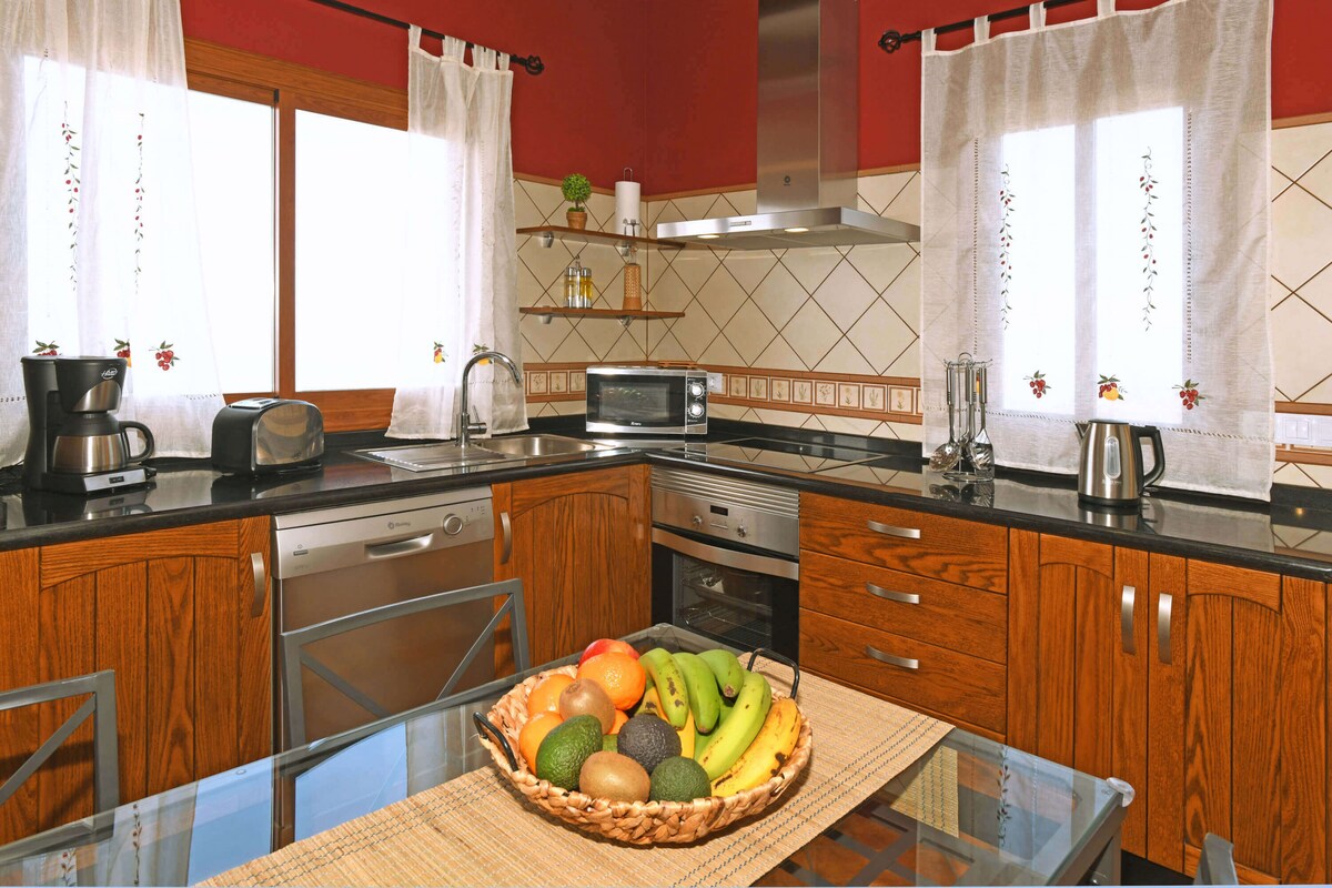 Slå opp med hverdagen og slapp av i denne oasen av ro. Uslåelig utsikt over Atlanterhavet, spektakulære solnedganger, utsikt over stjernene med total klarhet. Det har alt du trenger for en komfortabel ferie. To soverom, stue - spisestue - kjøkken, bad og vaskerom. Store terrasser, solarium, basseng og hager. Internettilgang med god hastighet. Klimaanlegg med varme og kjøling. Klimaanlegg i bassenget med en ekstra kostnad på 30 euro per dag.