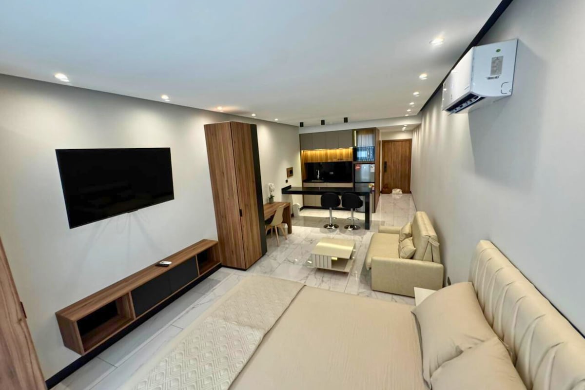Oppdag elegansen i denne koselige ettromsleiligheten med fantastisk utsikt. Opplev luksusen av ekstrem utstyr med en 65" 4K HDR Smart TV i stuen og en annen 50" TV på soverommet, kraftig klimaanlegg, vaskemaskin og nødvendige husholdningsapparater, Queen Ultra Comfort-seng, stellebord og kommode, i tillegg til hjemmeautomatisering og Alexa for å oppfylle dine ordrer. Opplev syntesen av modernitet som aldri før, bestill NÅ!