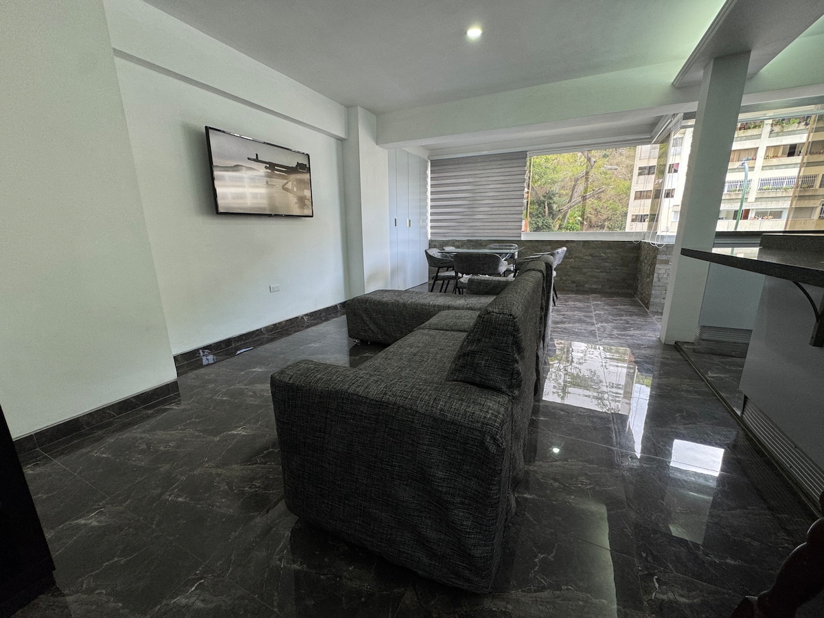 Nyt gleden, roen og komforten i et øko-urbant område i Colinas de Bello Monte, med panoramautsikt over byen, dens monumentale fjell og guacamayas, i en lys leilighet med 3 soverom, 2 bad og 1 privat parkeringsplass. Enten det er for jobb, helse eller turisme, gjør ditt besøk i Caracas til en uovertruffen opplevelse! Ikke glem å sjekke våre spesialtilbud for hver sesong. Vi snakker engelsk. Nous parlons français.