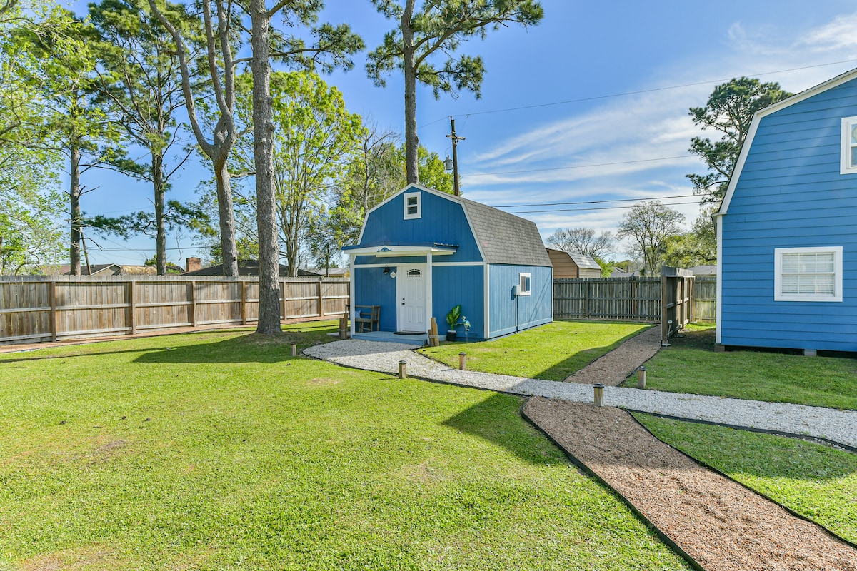 Privat, rolig og rent gjestehus med alt du trenger på 65 kvm. • omtenksomt rengjort av Superhosten din • Raskt trådløst nettverk (532 Mbit/s) • Vaskemaskin/tørketrommel i enheten • Arbeidsområde • komplett kjøkken med basisartikler • Utmerket klimaanlegg/varme • Koselig sofa og hvilestol. • 55 tommers smart-TV med Hulu og Disney+ inkludert • Privat bad og dusj med det nødvendigste. • Utendørs opplyste hager med beroligende vannfunksjoner. Helt adskilt fra hovedhuset Moderne LED-belysning Midtveis mellom Houston og Galveston