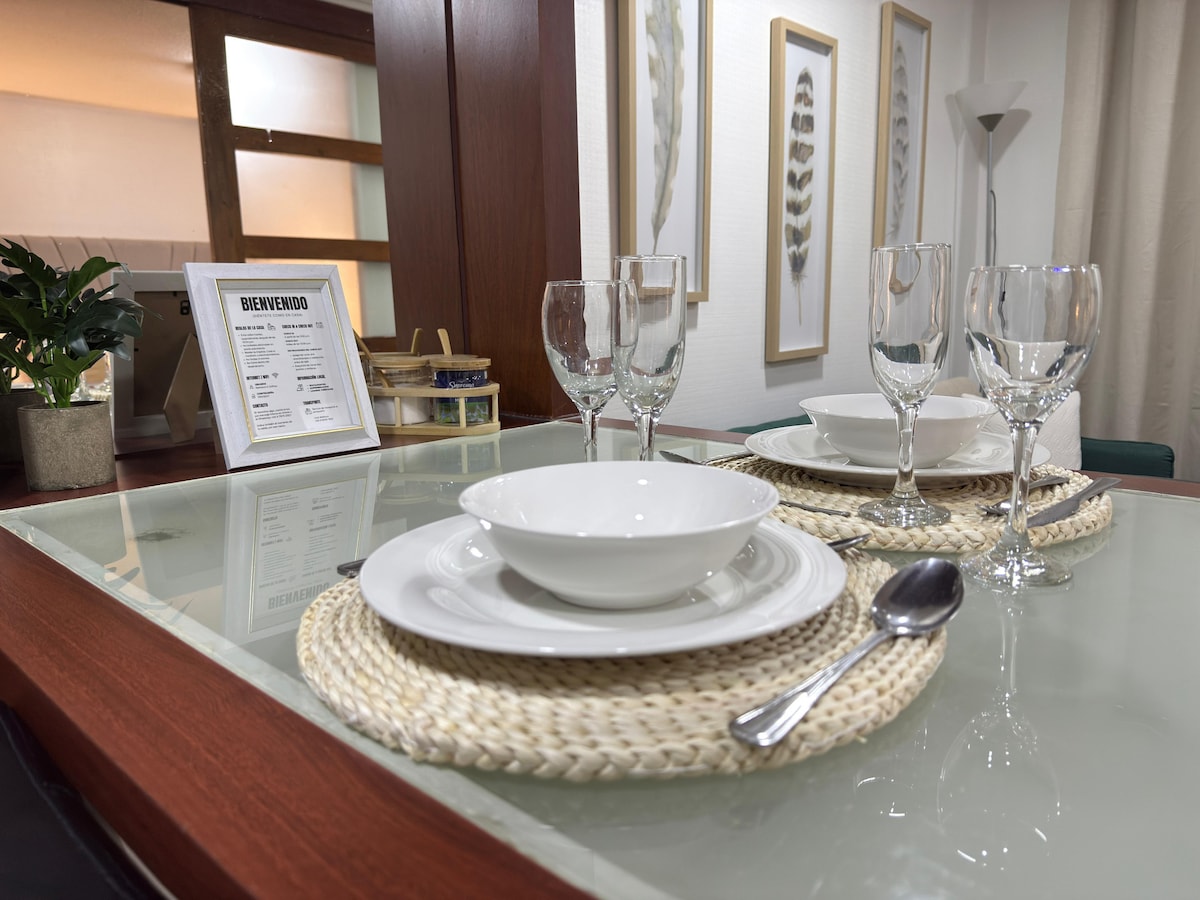 Nyt enkelheten i denne sentrale og rolige overnattingen. Utstyrt med 840 MB fiberinternett, kabel-TV, klimaanlegg og vaskemaskin. TV i stuen og på soverommet. FØRSTEKLASSES videounderholdningsapp, HBO MAX, PARAMOUNT BESØKSPARKERING i fire timer. Betalt parkering er tilgjengelig på eiendommen for 6000 USD per natt, med reservasjon. VÆR OPPMERKSOM PÅ AT INNSJEKKINGSTID ER FRA KL. 15.00 OG UTSJEKKING ER FØR KL. 11.00. HVIS DU TRENGER STEMMESEDDEL ELLER FAKTURA