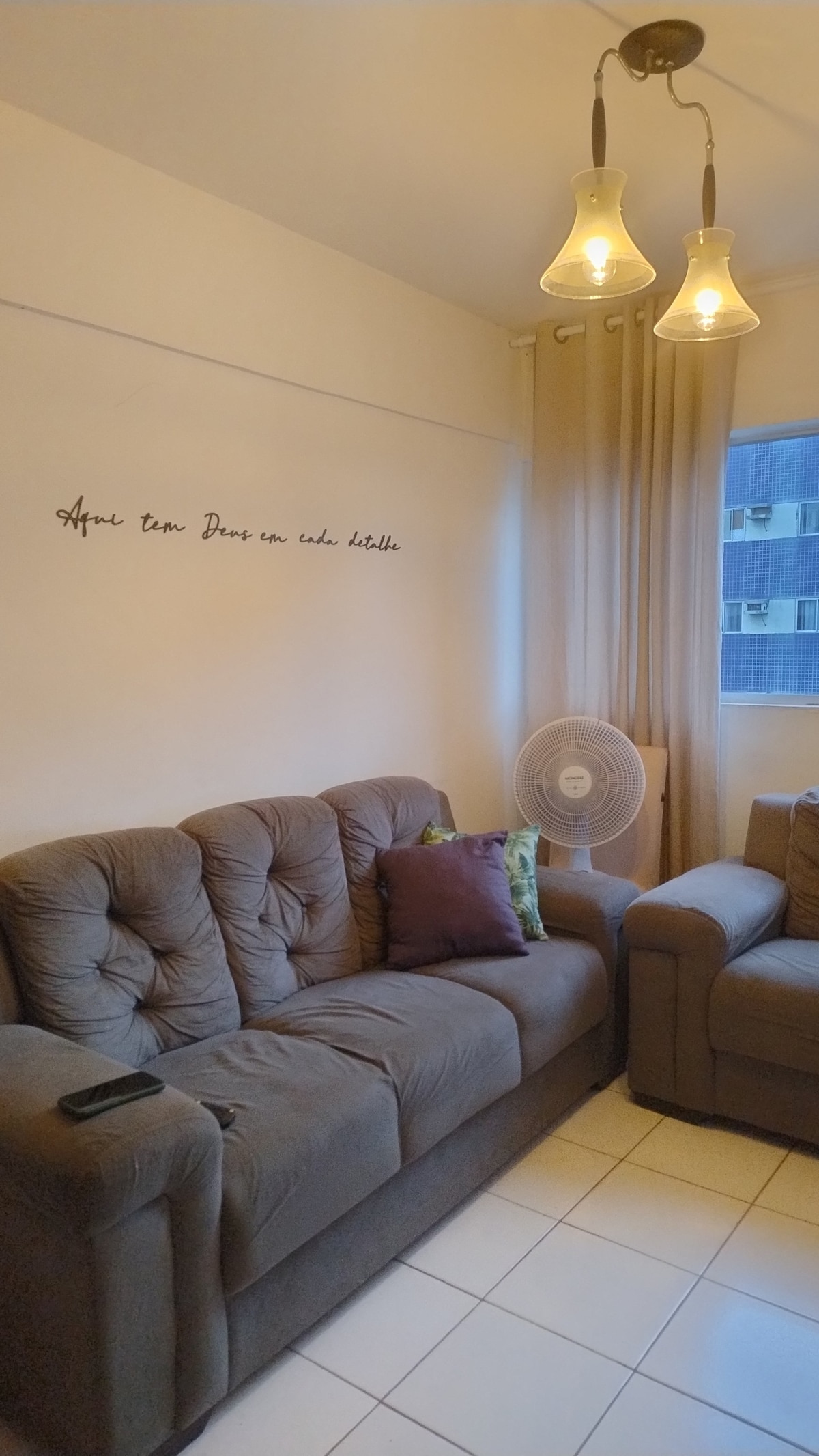 Trivelig leilighet i den øvre delen av Maceió, sentralt mellom flyplassen og vannkanten, Térreo, tverrgående den travleste avenyen i byen ligger i nærheten av supermarkeder, butikker, apotek og mer. Rom med uttrekkbar og tilbakelent sofa, 55 tommers smart-TV. Dobbeltrommet har klimaanlegg, SmartTV og fjærmadrass. Det andre soverommet med en enkeltseng HAR IKKE klimaanlegg. 01 Parkeringsplass. Innsjekking uten vert døgnet rundt.