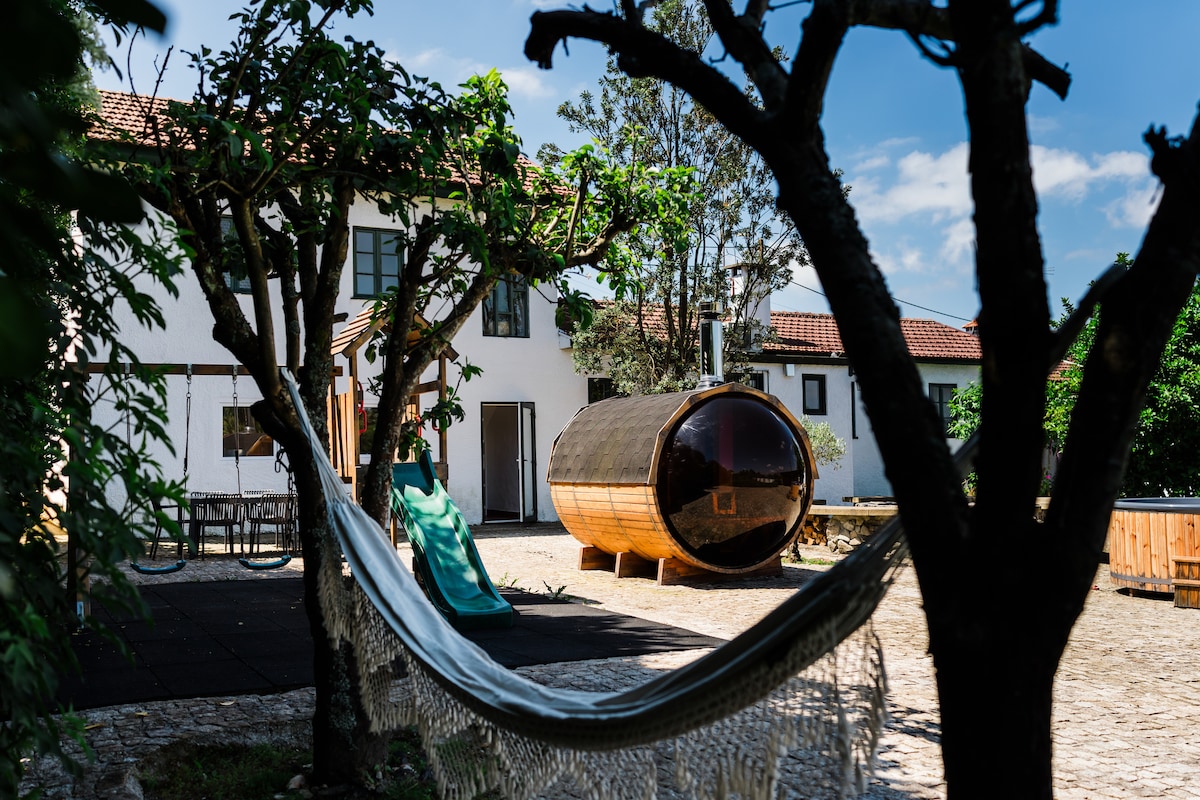 - landlig tilfluktssted, 15 minutter fra Porto og stranden - sauna, jacuzzi og bålplass for å slappe av - lekeplass og 2000kvmmed vegger. - Perfekt for familier: grill og piknik. - vanntank og fullstendig privatliv - mellom Aveiro, Coimbra, Braga og Viana - tre koselige soverom - Bestill nå for et sjarmerende opphold!