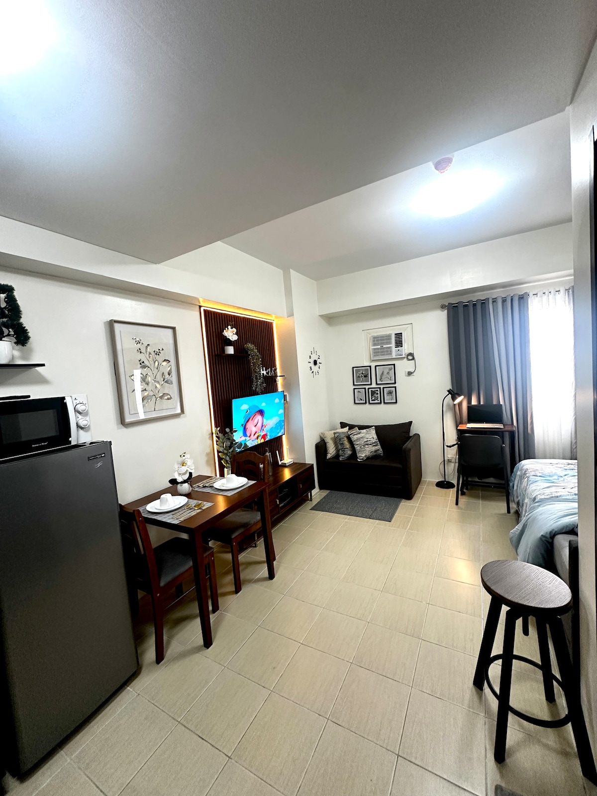 Mezza 2 Residences – leilighet med ett soverom med svømmebasseng, fullt oppgradert for 2025 i Quezon City, Metro Manila. Gratis trådløst nettverk med en 43"smart-TV som inkluderer Netflix. Balkong, klimaanlegg, kjøleskap, kokeplate, mikrobølgeovn, sovesofa og oppvarmet dusj. Rengjøring på hotellnivå etter hvert opphold. Basseng på taket i 7. etasje. Gangavstand til SM City shopping, mange restauranter, Anytime Fitness, SaveMore Grocery, UERM og LRT 2 Mapa Transit. Egen innsjekking med dørkode.