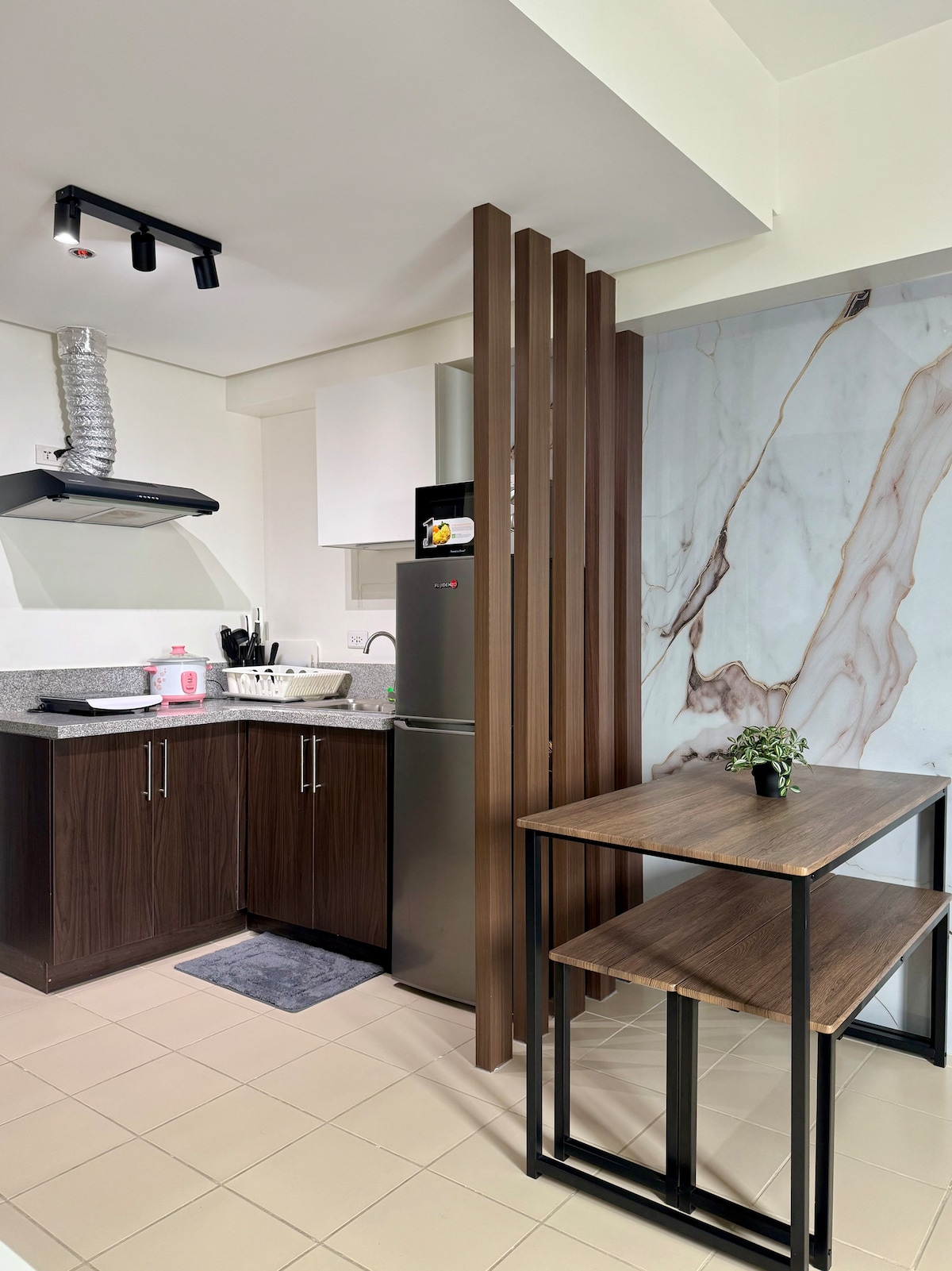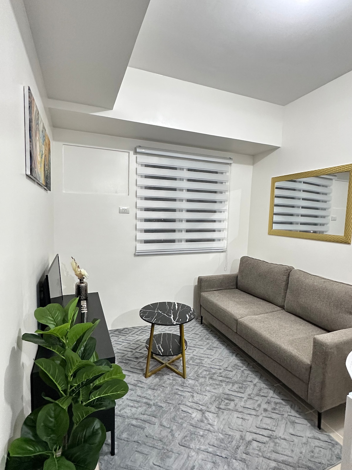 Enjoy a stylish experience at this centrally-located place. A perfect haven for you and your friends. Inclusions: 🅿️ With 1 Parking Slot included 🛏️ Fully Arranged Bedding 🤍 Fully Air-Conditioned 📺 50-inch Smart TV ☄️ Fast & Reliable Wi-Fi 🍽️ Complete Kitchenware 🧊 Refrigerator 🍳 Stove 🫖 Electric Kettle 🍱 Microwave 🧺 Washing Machine 🚿 Warm Shower Early check-in or late check-out upon request and availability. 📍NO PETS ALLOWED 📍NO SMOKING